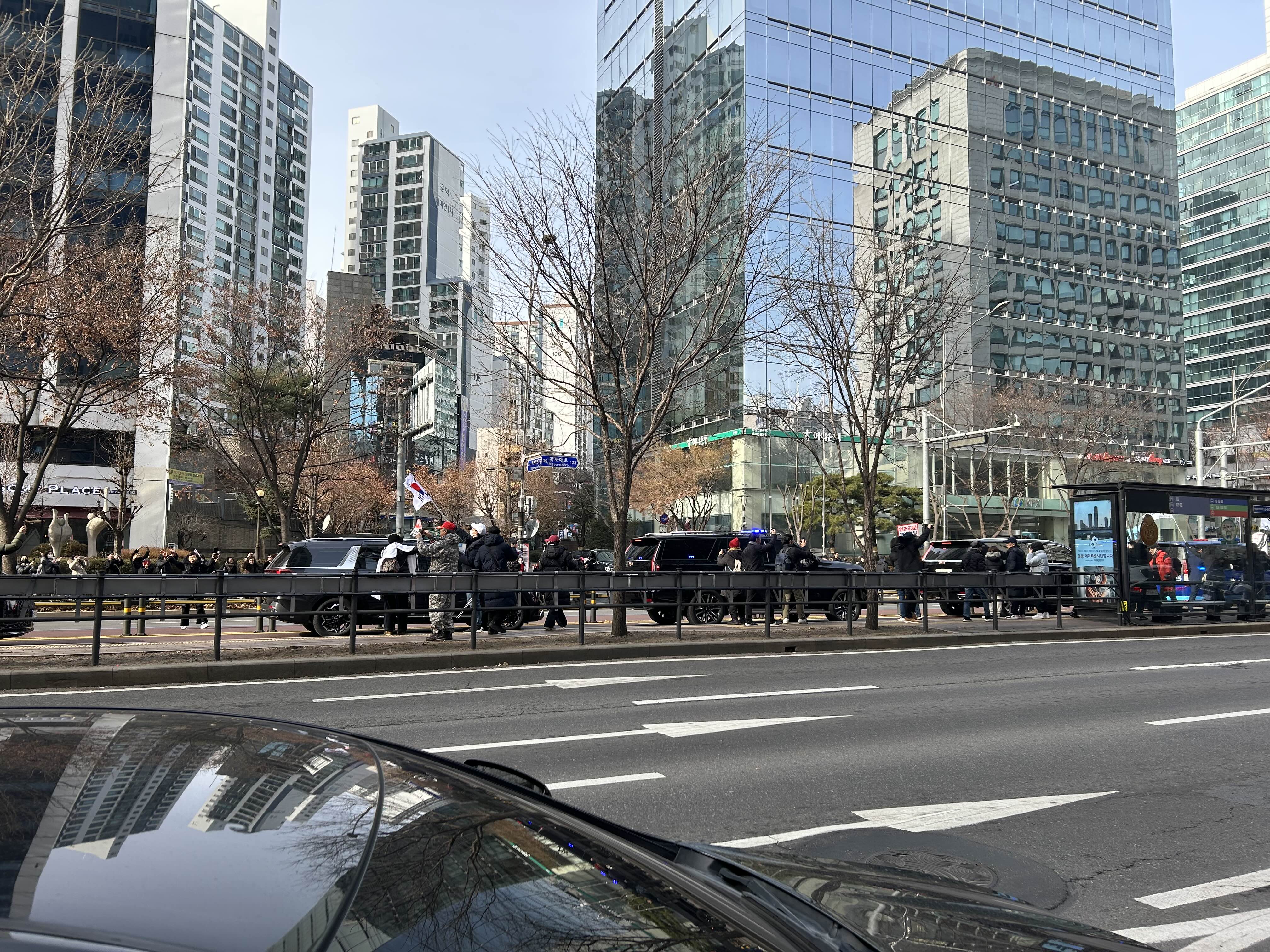윤 대통령의 출석 소식에 많은 지지자들이 공덕 서부지법 앞에 모여 ‘탄핵 무효’, ‘즉각 석방’ 등의 구호를 외쳤으며, 일부는 도로를 점거하기도 했습니다. 버스정류장과 윤 대통령이 이동하는 길에 사람들이 몰려들었고 경찰은 이들을 해산시키기 위해 강제 해산 조치를 이어갔습니다.