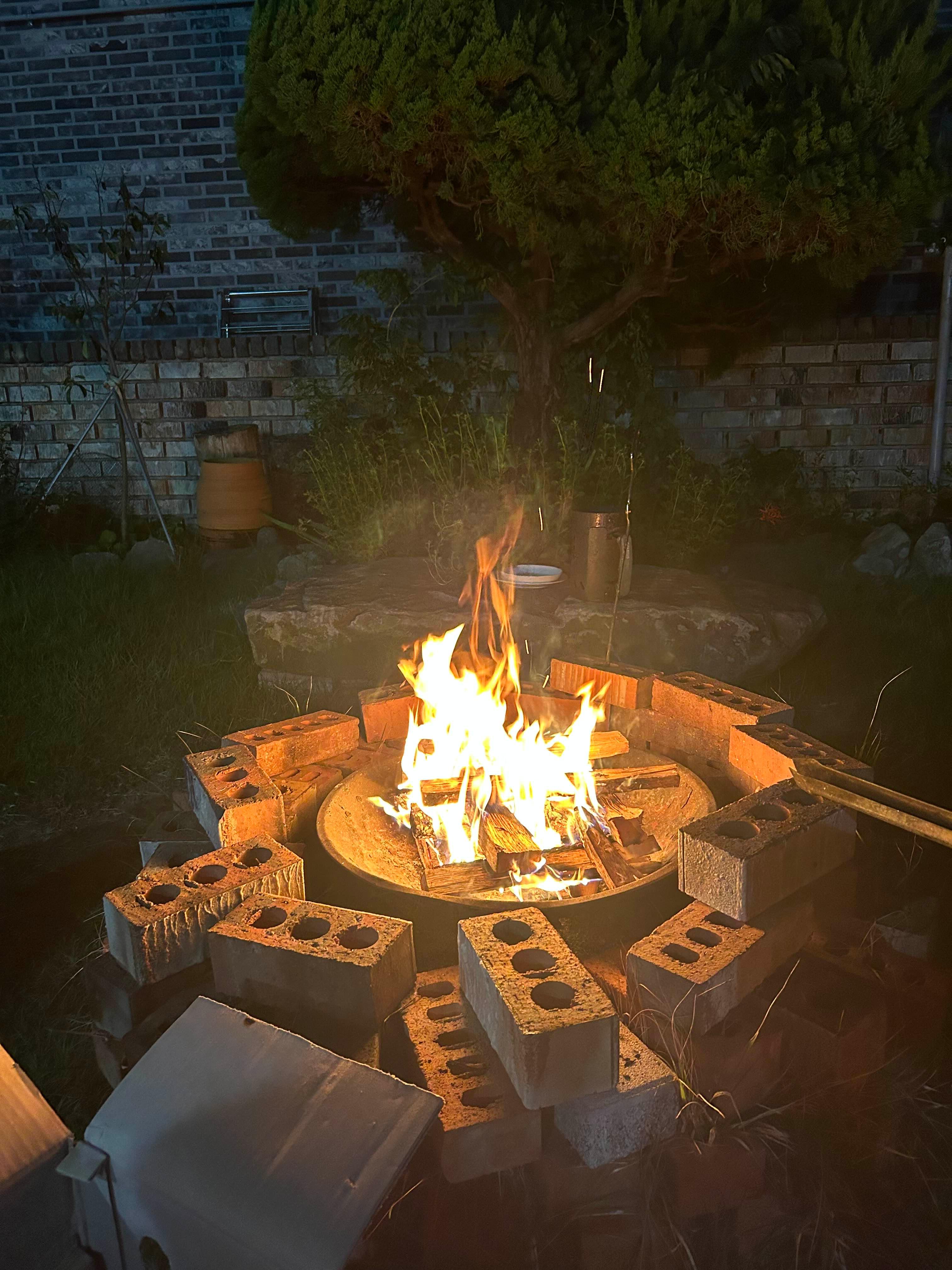 • 불 관리: 불이 커지면 큰 나뭇가지들을 추가하여 불이 오래 지속되도록 합니다. 불이 꺼지지 않도록 주의 깊게 관리하세요.